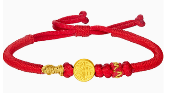 100032908600-980 周大福 长乐未央福字 定价黄金转运珠配手绳 EOR1001