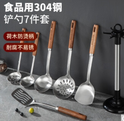 100075582463-100 美厨(maxcook)锅铲汤勺漏勺 304不锈钢铲勺套装 炒铲汤勺漏勺7件套MCCU8571