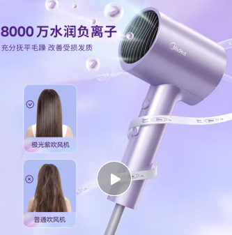 100034090325-100美的(Midea)八千万负离子电吹风 大功率 家用速干柔顺护发吹风筒 电吹风机 节日礼物 MB-AJ0504极光紫