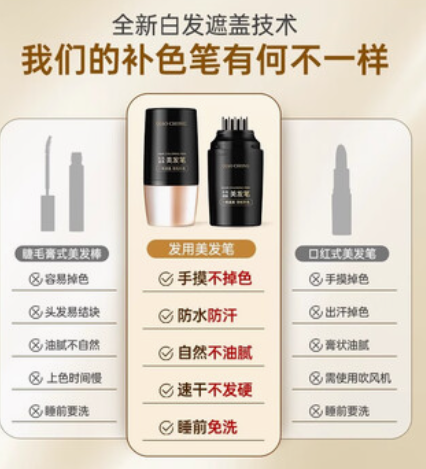 100240499364-55 翘宠美发棒植物遮盖白发神器染发棒遮盖染发笔防水防汗不掉色棕黑色*1