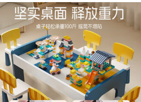 100275688396-210 虎实小宝儿童积木桌1-3-6-12岁结实多功能大号玩具拼装宝宝学习桌二合一