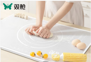100020522477-80 双枪 抗菌揉面垫案板 和面垫饺子烘焙垫面板 抗菌率99.9%耐高温带刻度5件套 透明白加大号硅胶垫