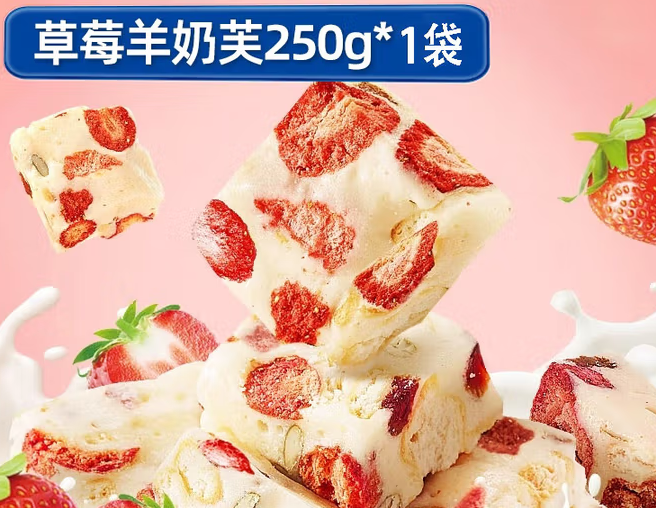 100276963946-20 爱山姆草莓冻干羊奶芙拉丝长条手工雪花酥独立小包装下午茶小零食250g
