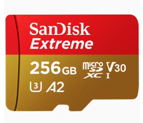 6201910-240 闪迪(SanDisk)256GB TF(MicroSD)内存卡 4K极速金卡A2 V30 U3行车记录仪 运动相机无人机 监控存储卡 读190MB/s