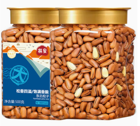 100062748770-60 林安 甄选东北松子大颗粒开口籽孕妇儿童休闲零食品坚果炒货1斤 罐装
