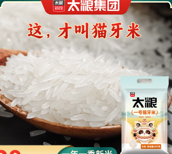 100068554519-70 太粮一号猫牙米10kg 长粒籼米 大米20斤 当季新米 京东自营