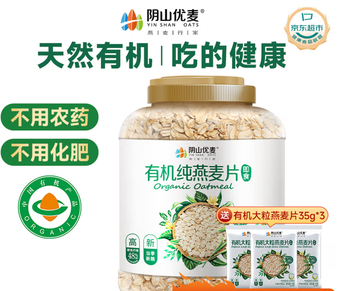 100148936694-65阴山优麦有机裸燕麦片1500g 高蛋白 膳食纤维 免煮即食 零添加糖 营养早餐