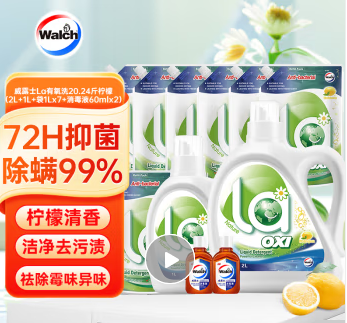100000671417-110威露士清可新洗衣液柠檬香20.24斤(瓶2L+1L+袋1L*7+消毒液60ml*2)除螨