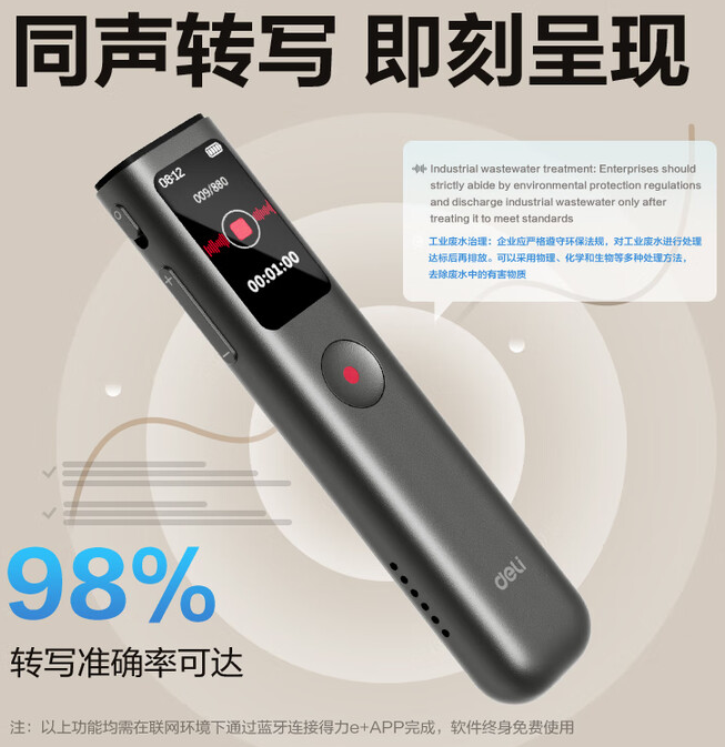100122780447-160得力录音笔转文字 小巧随身携带便携录音神器 一键录音设备机超长待机 专业录音会议纪要整理MP502-W