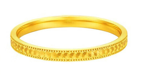 100284844338-1880 周大福鱼鳞圆点黄金戒指女(工费160)14号 约1.4g EOF1297