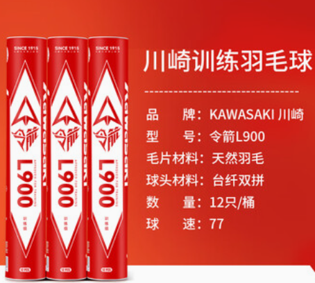 1289496-60 川崎(KAWASAKI)羽毛球耐打稳定训练比赛球天然羽毛12只装 令箭L900