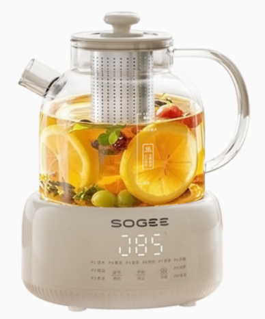 100230478008-160 小质养生壶1.2L全玻璃花茶壶0胶水0金属恒温煮茶器办公室热牛奶神器保温壶家用烧水壶电热水壶YSH11A