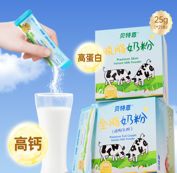 100190117760-100贝特恩BTNature蓝罐胖子奶粉脱脂便携小条装学生儿童成人高钙奶粉独立包装