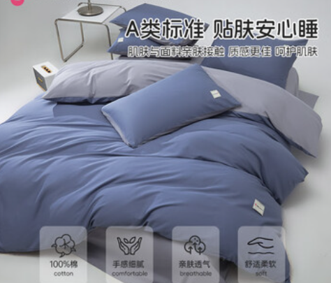 100134875540-120 洁丽雅3A抗菌100%纯棉新疆棉被罩床上用品双人被套220*240cm 宝蓝+浅灰