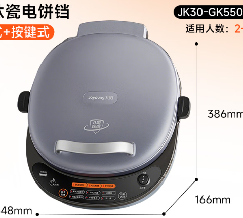 100119746896-250 九阳(Joyoung)电饼铛三明治机早餐机36mm深烤盘0氟钛瓷超耐磨少油家用煎烤机大火力烙饼锅GK550Pro