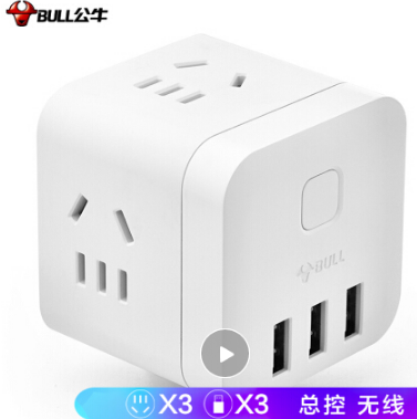 3759985-50 公牛(BULL) 魔方智能USB插座 插线板/插排/排插/接线板/拖线板 GN-U303UW 白色无线魔方USB插座