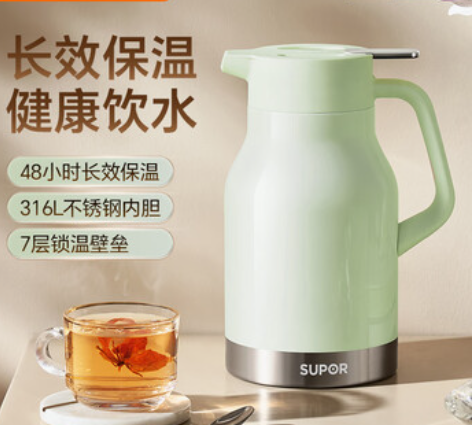 100121517139-251 苏泊尔保温壶家用大容量水壶316L不锈钢保温瓶热水壶暖壶开水瓶2.0L绿