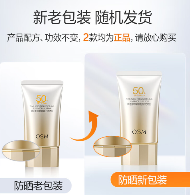 100134854337-60 欧诗漫(OSM)防晒霜零感美白防晒隔离乳50g*2 户外美白耐晒化妆品男女生日礼物