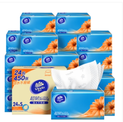 1297484-70 维达(Vinda)抽纸 超韧3层150抽*24包S码 湿水不易破 卫生纸 纸巾 餐巾纸 整箱